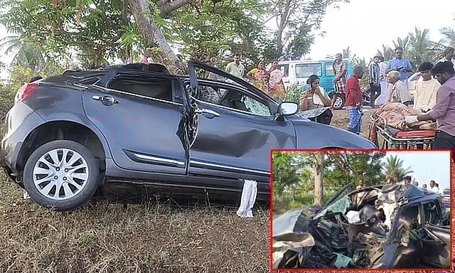 காரை சுபஷனா ஓட்டினார். காரில் அவரது மாமியார் உஷா (72 வயது), கணவர், குழந்தைகள் மற்றும் அவர்களது உறவினர் சிவக்குமார் (55 வயது) ஆகியோர் இருந்தனர். இந்த நிலையில் கார் இன்று காலை கள்ளக்குறிச்சி மாவட்டம், சின்னசேலம் அருகே கடலூர்-சேலம் தேசிய நெடுஞ்சாலையில் சென்று கொண்டிருந்தது.