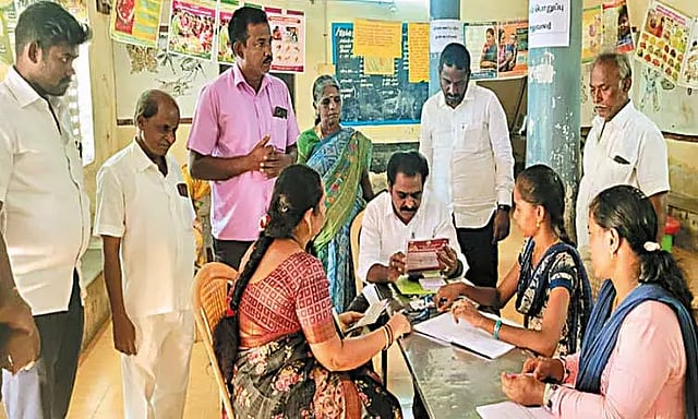 தமிழக அரசின் சார்பில் காஞ்சீபுரம் சட்டமன்ற தொகுதியில் காஞ்சீபுரம் வைகுண்டபுரம் தெரு, அசோக் நகர் பகுதிகளில் கலைஞர் மகளிர் உரிமை திட்ட பதிவு முகாம் நடைபெற்றது. முகாமை காஞ்சீபுரம் தொகுதி எம்.எல்.ஏ. சி.வி.எம்.பி. எழிலரசன் நேரில் சென்று பார்வையிட்டு, பதிவு செய்ய வரும் விண்ணப்பதாரர்களுக்கு தேவையான அடிப்படை வசதிகள் செய்து கொடுக்கப்பட்டுள்ளதா? முறையாக பதிவு செய்யப்படுகிறதா? என ஆய்வு மேற்கொண்டார்.