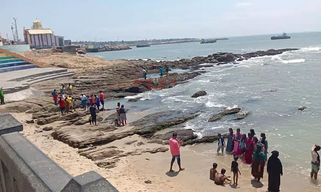 ஒரு புறம் கடல் சீற்றமாகவும் கொந்தளிப்பாகவும் காணப்படுகிறது. இன்னொரு புறம் கடல் உள்வாங்கி காணப்படுகிறது. இதனால் கன்னியாகுமரி கடல் நடுவில் அமைந்து உள்ள விவேகானந்தர் நினைவு மண்டபம் மற்றும் திருவள்ளுவர் சிலை அமைந்து உள்ள வங்ககடல் பகுதி நீர்மட்டம் தாழ்ந்து காணப்பட்டது.