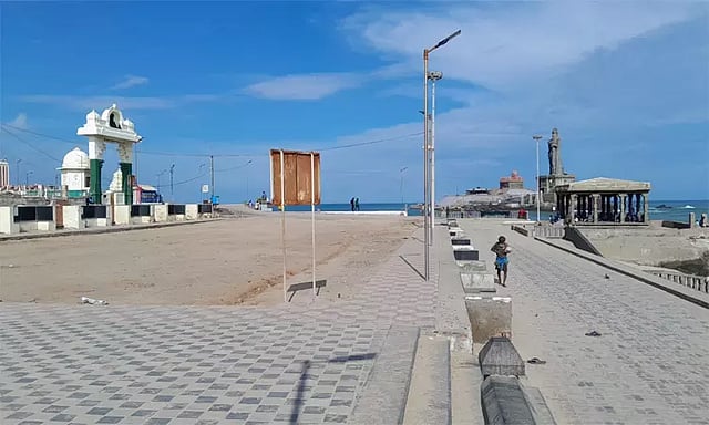 கன்னியாகுமரியில் சூரியன் உதயமாகும் காலை நேரத்திலும் சூரியன் மறையும் மாலை நேரத்திலும் கடற்கரையில் சுற்றுலா பயணிகள் கூட்டம் குறைந்த அளவே காணப்படுகிறது.