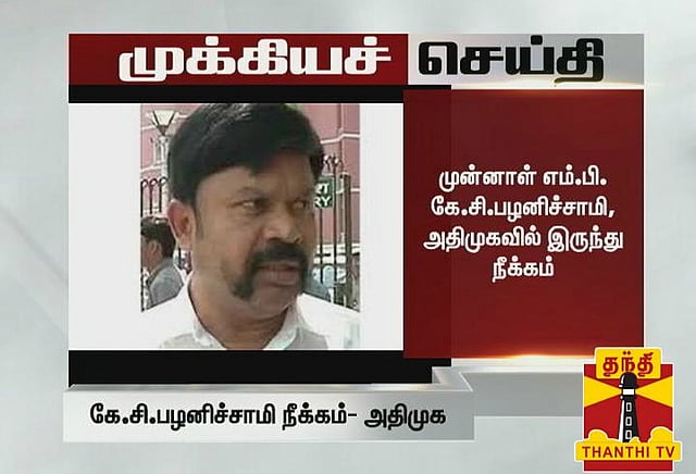 அதிமுகவில் இருந்து நீக்கப்படும் இரண்டாவது செய்தித் தொடர்பாளர் கே.சி.பழனிச்சாமி ஆவார்.