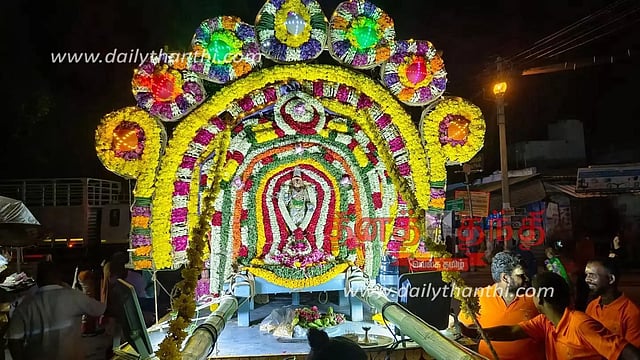 சென்னிமலையில் உள்ள காமாட்சி அம்மன் கோவிலில் பொங்கல் விழா நடைபெற்று வருகிறது. இதையொட்டி நேற்று காமாட்சி அம்மன் சிறப்பு அலங்காரத்தில் சப்பரத்தில் எழுந்தருளி 4 ராஜ வீதிகளிலும் உலா வந்தபோது எடுத்த படம்.அம்மன் வீதி உலா