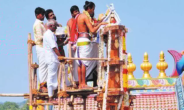 திருத்தணி முருகன் கோவிலின் உபகோவிலான வடாரண்யேஸ்வரர் திருக்கோவில் திருவாலங்காட்டில் அமைந்துள்ளது. இந்த கோவிலில் ஆண்டுதோறும் பங்குனி உத்திரம் கொடியேற்றத்துடன் வெகு சிறப்பாக நடப்பது வழக்கம். இந்நிலையில் கடந்தாண்டு கொடியேற்றத்தின் போது கொடிமரத்தை புனரமைப்பு செய்து மெருகூட்டுவதற்காக கொடி மரத்தின் மீது இருந்த பித்தளை கவசங்கள் கழற்றப்பட்டது. அப்போது கொடிமரம் சேதமடைந்து இருப்பது தெரியவந்தது.