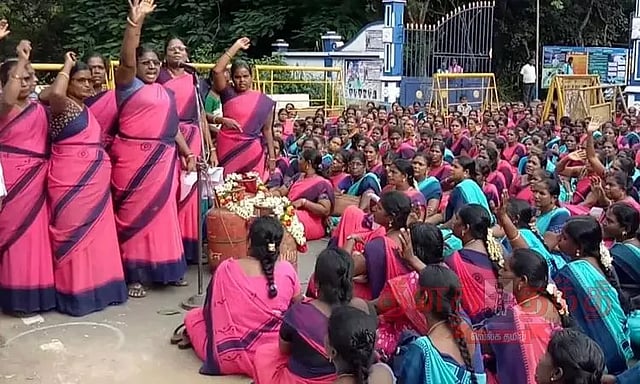 காலமுறை ஊதியம் வழங்கக்கோரி திருவாரூரில் அங்கன்வாடி ஊழியர்கள் ஆர்ப்பாட்டத்தில் ஈடுபட்டனர்.