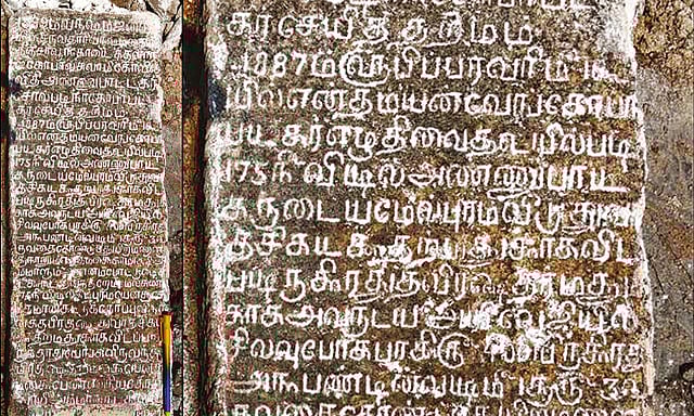 தஞ்சை மாநகர ராஜகோபாலசாமி தெருவில் உள்ள கிட்டப்பா வட்டாரத்தில் பிற்கால கல்வெட்டு ஒன்று கண்டெடுக்கப்பட்டுள்ளது. கல்வெட்டை தஞ்சை சரசுவதி மகால் நூலக தமிழ்ப்பண்டிதரும், வரலாற்று ஆய்வாளருமான மணிமாறன், ஓய்வு பெற்ற தலைமை ஆசிரியர் தில்லை கோவிந்தராஜன், பட்டதாரி ஆசிரியர் ஜெயலட்சுமி, ஏடகம் சுவடியியல் மாணவர் சரவணன் ஆகியோர் ஆய்வு செய்தனர். பின்னர் அவர்கள் கூறியதாவது:-