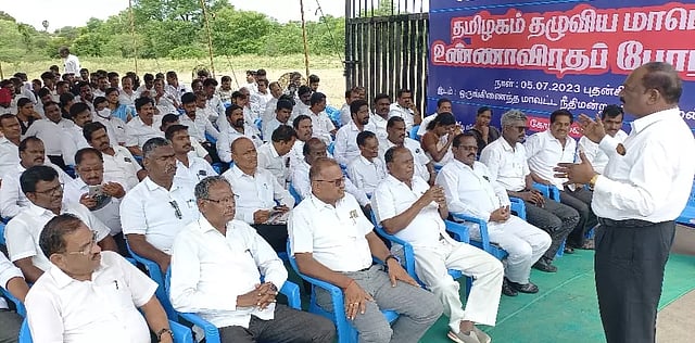 தர்மபுரி வக்கீல் சங்கத்தலைவர் சந்திரசேகரன் உண்ணாவிரதத்தை தொடங்கி வைத்தார். போராட்டத்தில் வக்கீல்கள் கலந்து கொண்டு கோரிக்கைகளை விளக்கி பேசினர்.