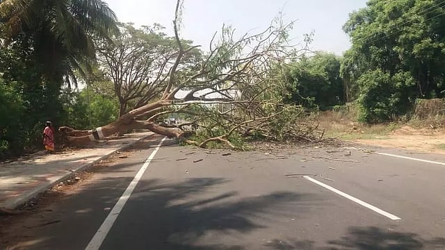 மேலும் பஸ், லாரி என கனரக வாகனங்கள் செல்ல முடியாமல் சிரமம் ஏற்பட்டது. இதுகுறித்து தகவல் அறிந்த நெடுஞ்சாலைத்துறையினர் சம்பவ இடத்துக்கு விரைந்து வந்து, மரத்தை வெட்டி அகற்றினர். அதன்பிறகு போக்குவரத்து தொடங்கியது. மரம் சாய்ந்ததால் பழனி-தாராபுரம் சாலையில் சுமார் 1 மணி நேரம் போக்குவரத்து பாதிக்கப்பட்டது குறிப்பிடத்தக்கது.