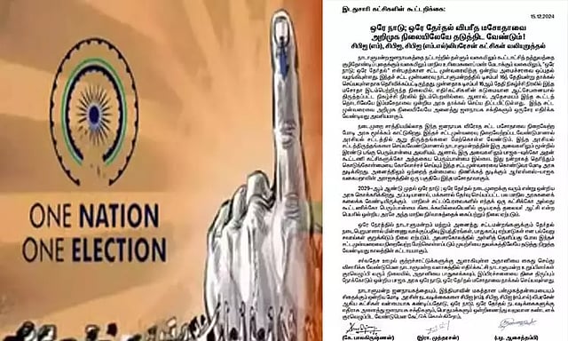 ஒரே நாடு ஒரே தேர்தல் முறைக்கு இடதுசாரி கட்சிகள் கடும் எதிர்ப்பு தெரிவித்துள்ளன.. இது குறித்து அக்கட்சிகளின் மாநிலச் செயலாளர்கள் கே.பாலகிருஷ்ணன் (மார்க்சிஸ்ட்), இரா.முத்தரசன் (இந்திய கம்யூனிஸ்ட்), பழ.ஆசைத்தம்பி (மார்க்சிஸ்ட் லெனினிஸ்ட்) ஆகியோர் வெளியிட்டுள்ள கூட்டறிக்கை: