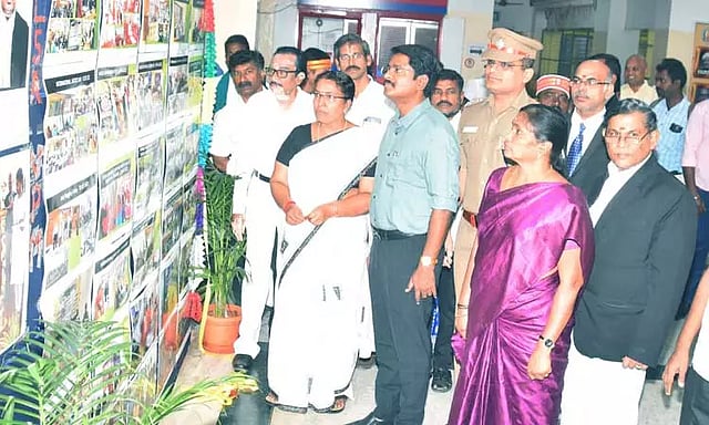 விழுப்புரம் கலெக்டர் அலுவலகத்தில் மாவட்ட சட்டப்பணிகள் ஆணைக்குழு மற்றும் மாவட்ட நிர்வாகம் சார்பில் சட்ட விழிப்புணர்வு நாள் கண்காட்சி தொடங்கியது. இதை மாவட்ட முதன்மை அமர்வு நீதிபதி பூர்ணிமா, கலெக்டர் மோகன் ஆகியோர் தொடங்கி வைத்து பார்வையிட்டனர். போலீஸ் சூப்பிரண்டு ஸ்ரீநாதா, வருவாய் அலுவலர் பரமேஸ்வரி மற்றும் நீதிபதிகள் முன்னிலை வகித்தனர். இக்கண்காட்சியில் பொதுமக்களுக்கு சட்டம் சார்ந்த உரிமைகள், தகவல்களை தெரிந்துகொள்ளும் வகையில் மாவட்ட சட்டப் பணிகள் ஆணையத்தின் பல்வேறு நிகழ்வுகளுக்கான புகைப்பட காட்சிகள் இடம்பெற்றுள்ளன. இதை அதிகாரிகள், பொதுமக்கள் பலரும் பார்வையிட்டனர். அப்போது பொதுமக்களுக்கு சட்ட விழிப்புணர்வு குறித்த துண்டு பிரசுரங்கள் வழங்கப்பட்டன.