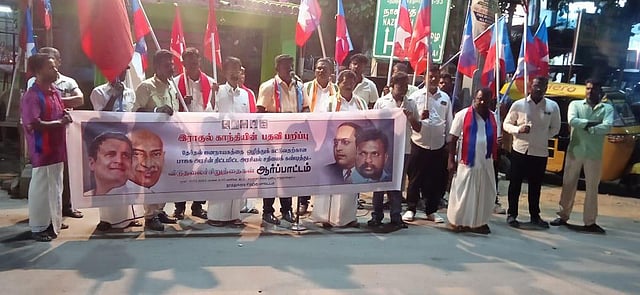 காங்கிரஸ் முன்னாள் தலைவர் ராகுல் காந்தியின் எம்.பி. பதவி பறிப்பை கண்டித்து சாத்தான்குளத்தில் விடுதலைச் சிறுத்தைகள் கட்சி சார்பில் கண்டன ஆர்ப்பாட்டம் நடந்தது. காமராஜர் சிலை முன்பு நடந்த ஆர்ப்பாட்டத்திற்கு இளம் சிறுத்தைகள் எழுச்சி பாசறை மாவட்ட அமைப்பாளர் விடுதலைச் செழியன் தலைமை தாங்கினார். மாவட்ட துணை அமைப்பாளர் அந்தோணி ராவணன், ஒன்றிய துணைச் செயலாளர் சுரேந்தர், நகர செயலாளர் முருகேசன் உள்ளிட்ட கட்சி நிர்வாகிகள் பலர் கலந்து கொண்டனர்.