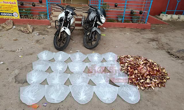 அவற்றை போலீசார் சோதனை செய்தபோது 2 பேரும் சாராயம் மற்றும் மதுபாட்டில்களை கடத்தி வந்தது தெரியவந்தது. இதையடுத்து அங்கிருந்த 110 லிட்டர் சாராய பாக்கெட்டுகள், 90 மில்லி லிட்டர் அளவு கொண்ட 500 மது பாட்டில்கள், கடத்தலுக்கு பயன்படுத்திய 2 மோட்டார் சைக்கிள்களை தனிப்படை போலீசார் பறிமுதல் செய்து, நாகூர் போலீஸ் நிலையத்தில் ஒப்படைத்தனர்.