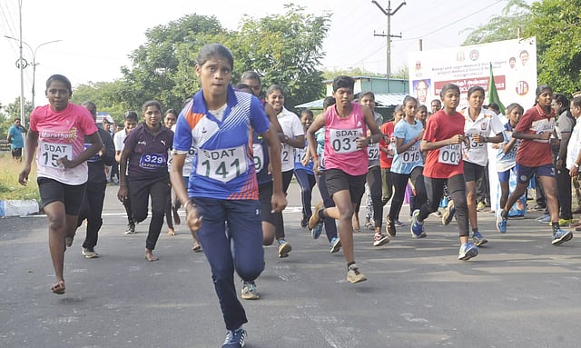 இளைஞர் நலன் மற்றும் விளையாட்டு மேம்பாட்டுத்துறை, தமிழ்நாடு விளையாட்டு மேம்பாட்டு ஆணையம் பெரம்பலூர் மாவட்டம் சார்பில் பேரறிஞர் அண்ணா பிறந்த நாளை நினைவு கூறும் வகையில் மாரத்தான் போட்டிக்கு இணையான நெடுந்தூர ஓட்டப்போட்டி நேற்று நடத்தப்பட்டது. பெரம்பலூரில் உள்ள மாவட்ட கலெக்டர் அலுவலகத்தின் முன்பு உள்ள சாலையில் இருந்து புறப்பட்ட நெடுந்தூர ஓட்டப்போட்டியை மாவட்ட கலெக்டர் கற்பகம் கொடியசைத்து தொடங்கி வைத்தார்.