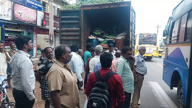 இந்த நிலையில் நேற்று மாலை தக்கலை அருகே அழகியமண்டபம் பகுதியில் துர்நாற்றம் வீசியவாறு ஒரு கன்டெய்னர் லாரி வந்து கொண்டிருந்தது. இதைக்கண்ட அந்த பகுதி மக்கள் உடனே அங்கு பாதுகாப்பு பணியில் இருந்த போக்குவரத்து போலீசாரிடம் தெரிவித்தனர். உடனே போலீசார் அந்த லாரியை தடுத்து நிறுத்தி சோதனை செய்தனர். அப்போது லாரியில் ஆடு, மாடு, கோழிகளின் இறைச்சி கழிவுகள் துர்நாற்றத்துடன் இருப்பதை கண்டனர். இதுபற்றி தக்கலை போலீசுக்கு தெரிவிக்கப்பட்டது.
