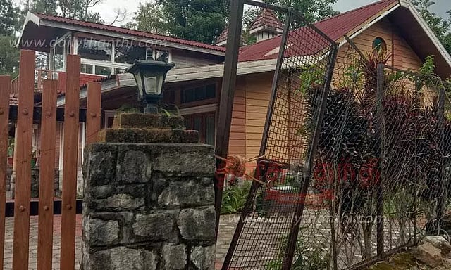 இந்த மக்னா யானை நேற்று அதிகாலை சிவா காபி எஸ்டேட் தொழிலாளர்கள் குடியிருப்பு பகுதிக்குள் நுழைந்தது. தொடர்ந்து கொய்யா மரங்களை உடைத்து, பழங்களை ருசித்தது. பின்னர் அருகில் உள்ள தனியார் தங்கும் விடுதியின் நுழைவு வாயிலை உடைத்து அட்டகாசம் செய்தது.