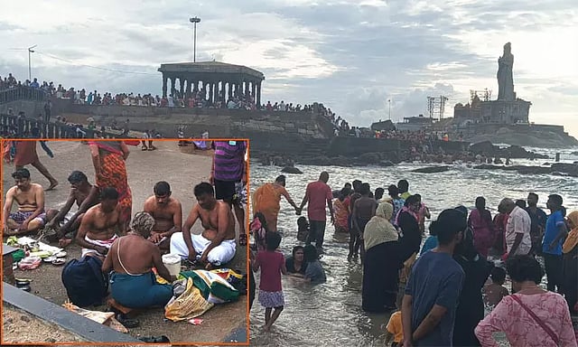 அவர்கள் கன்னியாகுமரியில் முக்கடலும் சங்கமிக்கும் திரிவேணி சங்கமம் சங்கிலித்துறை கடலில் புனித நீராடினார்கள். அதன் பிறகு ஈரத் துணியுடன் கரைக்கு வந்துகடற்கரையில் அமர்ந்து இருந்த புரோகிதர்கள் மற்றும் ஓதுவார்கள் மூலம் தங்களது முன்னோர்களை நினைத்து பலி கர்ம பூஜை செய்தார்கள். அவ்வாறு பூஜை செய்த பச்சரிசி, எள், பூக்கள் மற்றும் தர்ப்பை புல் போன்றவற்றை ஒரு வாழை இலையில் வைத்து தலையில் சுமந்துகொண்டு சென்று கடலில் போட்டுவிட்டு மீண்டும் நீராடி தங்களது முன்னோர்களை நினைத்து தர்ப்பணம் செய்தார்கள்.