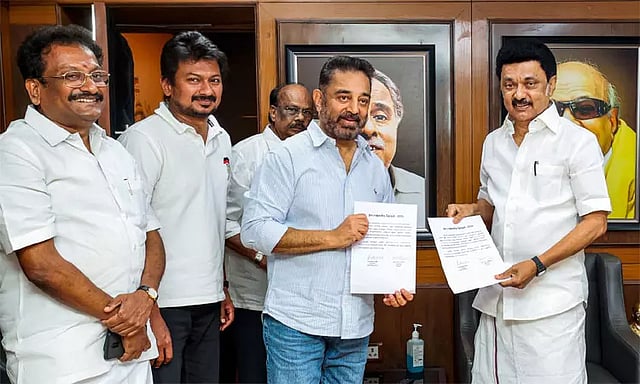 இந்நிலையில், தி.மு.க. கூட்டணியில் இடம்பெற்றுள்ள கமல்ஹாசனின் மக்கள் நீதி மய்யம் கட்சிக்கு ஒரு மாநிலங்களவை தொகுதி. தொகுதி பங்கீடு தொடர்பான ஒப்பந்தம் தி.மு.க. தலைவரும், முதல்-அமைச்சருமான மு.க.ஸ்டாலின் மற்றும் மக்கள் நீதி மய்யம் தலைவர் கமல்ஹாசன் இடையே இன்று கையெழுத்தாகியுள்ளது.