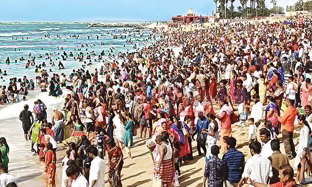 அவர்கள் ஆம்புலன்ஸ் மூலம் ஆஸ்பத்திரிக்கு அனுப்பி வைக்கப்பட்டனர். தொடர் விடுமுறையால் கோவில் வளாகம், கடற்கரையில் பக்தர்களின் கூட்டம் அலைமோதியது. அதேபோல் பக்தர்கள் அதிகாலை முதலே கடல் மற்றும் நாழிக்கிணறு தீர்த்தத்தில் புனித நீராடினர். அப்போது கடலில் குளித்த பாலக்காடு பகுதியைச் சேர்ந்த 13 வயது சிறுவனுக்கு திடீரென வலிப்பு நோய் ஏற்பட்டதால் கடலுக்குள் இழுத்துச் செல்லப்பட்டான்.