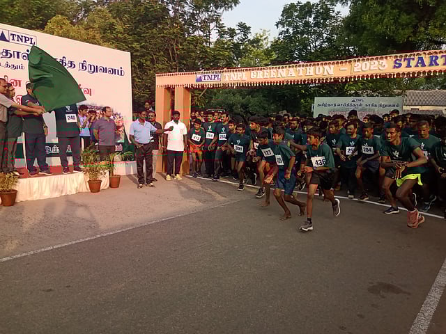 காகிதபுரம் தமிழ்நாடு செய்தித்தாள் காகித நிறுவனம் சார்பில் சுற்றுச்சூழல் தினத்தை முன்னிட்டு ஆண்கள் மற்றும் பெண்களுக்கான பசுமை ஓட்டம் என்ற மாரத்தான் ஓட்டப்பந்தயம் மற்றும் மரம் நடும் விழா ஆகியவை நடைபெற்றது. மாரத்தான் ஓட்டப்பந்தயம் காகித ஆலை குடியிருப்பு வளாகத்தில் உள்ள விளையாட்டு அரங்கில் தொடங்கி காந்திநகர், நொய்யல் பிரிவு சாலை, வேலாயுதம்பாளையம் ரவுண்டானா சென்று திரும்பும் வகையில் சுமார் 5 கிலோ மீட்டர் தூரத்திற்கு ஓட்டப்பந்தயம் நடைபெற்றது. இந்த மாரத்தான் ஓட்டப்பந்தயத்தில் 15 வயதுக்கு மேற்பட்ட ஆண்கள் மற்றும் பெண்கள் பிரிவுகளில் மொத்தம் 432 பேர் கலந்து கொண்டனர். இதில் வெற்றி பெற்ற ஆண்கள் மற்றும் பெண்கள் பிரிவுகளில் முதல் பரிசாக ரூ.10 ஆயிரம், 2-ம் பரிசு ரூ.7 ஆயிரத்து 500, 3-ம் பரிசு ரூ.5 ஆயிரம் மற்றும் சிறப்பு ஆறுதல் பரிசாக 100 பேருக்கு தலா ரூ.500 வழங்கப்பட்டது. இதில் கலந்து கொண்ட வீரர் மற்றும் வீராங்கனைகளுக்கு காகித ஆலை நிறுவனம் சார்பில் நெகிழிப் பொருட்களை மறுசுழற்சி செய்து தயாரிக்கப்பட்ட சுற்றுசூழலுக்கு ஏற்ற டி-சர்ட் இலவசமாக வழங்கப்பட்டது. இதில் பங்கேற்ற அனைவருக்கும் சான்றிதழ்கள், சிற்றுண்டி, தேநீர், எலுமிச்சை சாறு, குளுக்கோஸ் வழங்கப்பட்டது. கரூர் மாவட்ட போலீஸ் சூப்பிரண்டு சுந்தரவதனம், காகித ஆலை நிறுவனத்தின் தலைமை விழிப்புணர்வு அதிகாரி பண்டி கங்காதர், புகழூர் நகராட்சி தலைவர் சேகர் என்கிற குணசேகரன், கரூர் மாசுகட்டுப்பாட்டு வாரிய சுற்றுச்சூழல் உதவி பொறியாளர் ஜெயக்குமார் ஆகியோர் கலந்து கொண்டு வெற்றி பெற்றவர்களுக்கு பரிசுகளை வழங்கினர்.மேலும் சுற்றுச்சூழலுக்கு உகந்த வாழ்க்கை முறை என்ற கையேட்டினை மாவட்ட போலீஸ் சூப்பிரண்டு சுந்தரவதனம் வெளியிட உதவி மாவட்ட சுற்றுச்சூழல் பொறியாளர் ஜெயக்குமார் பெற்று கொண்டார். தொடர்ந்து காகித ஆலை குடியிருப்பு வளாகத்தில் 4 ஆயிரம் மரக்கன்றுகள் நடப்பட்டது.இதில் காகித ஆலை நிறுவனத்தின் செயல் இயக்குனர் கிருஷ்ணன், முதன்மை பொது மேலாளர் (வனத்தோட்டம், ஆராய்ச்சி மற்றும் அபிவிருத்தி) மற்றும் நிலைத்தன்மை அதிகாரி சீனிவாசன், முதன்மை பொது மேலாளர் (உற்பத்தி மற்றும் திட்ட ஒருங்கிணைப்பு) வரதராஜன் உள்பட காகித ஆலை வனத்தோட்டத்துறை மற்றும் மனித வளத்துறையை சேர்ந்த அலுவலர்கள் மற்றும் தொழிலாளர்கள் உள்பட பலர் கலந்து கொண்டனர். முடிவில் காகித ஆலை நிறுவனத்தின் துணைப் பொது மேலாளர் (வனம்) ஜெயக்குமார் நன்றி கூறினார்.