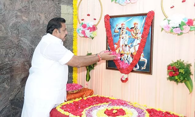 இந்நிலையில், சேலம் நெடுஞ்சாலை நகர் இல்லத்தில், மருது சகோதரர்களின் உருவப்படத்திற்கு எடப்பாடி பழனிசாமி மலர் தூவி மரியாதை செலுத்தினார்.