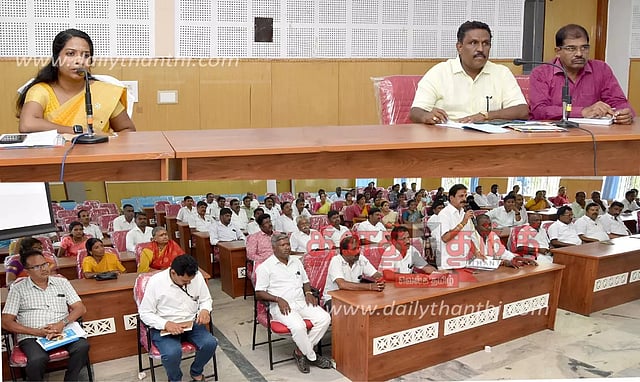 கிருஷ்ணகிரி மாவட்டத்தில் உள்ள 333 கிராம ஊராட்சிகளில் 5 ஒன்றியத்தில் இருந்து 173 கிராம ஊராட்சி மன்ற தலைவர்களுக்கு மாவட்ட அளவிலான கலந்தாய்வு கூட்டம் நடைபெறுகிறது. இணைவழி வரி வசூல், பொது கழிப்பிடங்களை சுத்தமாகவும், தங்களது ஊராட்சியில் தேங்கும் குப்பைகளை நாள்தோறும் அப்புறப்படுத்தி சுத்தம் செய்து, பிளாஸ்டிக் பயன்பாட்டை கட்டுப்படுத்தியும், சுற்றுப்புறங்களை தூய்மையாக வைக்க வேண்டும்.
