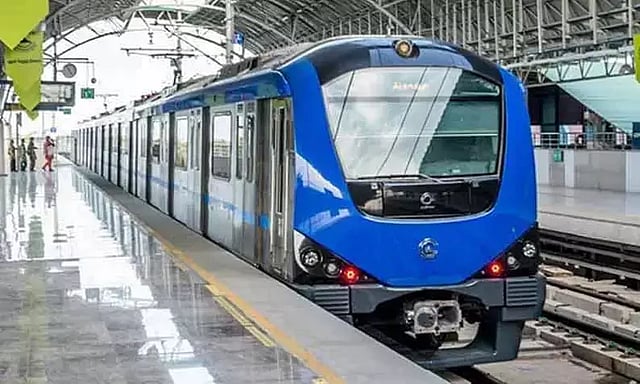 நீல வழித்தடம்: அரசினர் தோட்டம் மெட்ரோ ரெயில்நிலையத்திலிருந்து விமானநிலையம் மற்றும் விம்கோ நகர் பணிமனை ரெயில்நிலையம் நோக்கி இயக்கப்படும்.