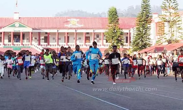 இதில் மெட்ராஸ் ரெஜிமென்டல் சென்டர் கமாண்டென்ட் பிரிகேடியர் சுனில் குமார் யாதவ் போட்டியை கொடியசைத்து தொடங்கி வைத்தார். போட்டியில் பொதுமக்கள் மற்றும் மாணவர்கள் பங்கேற்றனர். 5 கிலோ மீட்டர் மற்றும் 12 கிலோ மீட்டர் தூரம் என இரு பிரிவுகளில் மாரத்தான் நடந்தது. வெற்றி பெற்றவர்களுக்கு பரிசுகள் வழங்கப்பட்டன. மேலும் போட்டியில் பங்கேற்ற அனைவருக்கும் சான்றிதழ்கள் வழங்கப்பட்டன.