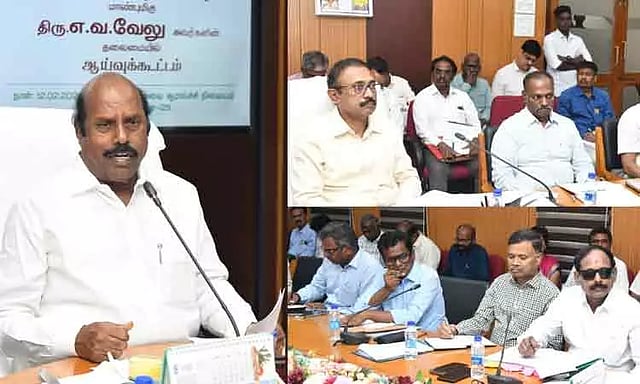 கிண்டி நெடுஞ்சாலை ஆராய்ச்சி நிலையத்தில் உள்ள கூட்டரங்கில், நெடுஞ்சாலைத்துறை சாலைகளின் பராமரிப்புப் பணிகள் தொடர்பாக, இன்று (12.02.2025) பொதுப்பணிகள், நெடுஞ்சாலைகள் மற்றும் சிறு துறைமுகங்கள் துறை அமைச்சர் எ.வ.வேலு அவர்கள் ஆய்வு மேற்கொண்டார்.
