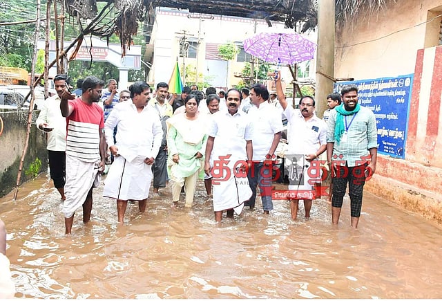 மயிலாடுதுறையில் குடியிருப்புகளில் தங்கிய மழைநீரை அப்புறப்படுத்தும் பணியை அமைச்சர் மெய்யநாதன் ஆய்வு செய்தார்.