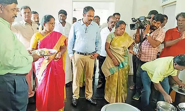 திருமழிசை அடுத்த மேல்மணமேடு பகுதியில் அரசு ஆதிதிராவிடர் நல மாணவர் விடுதி செயல்பட்டு வருகிறது. இந்த விடுதியில் ஆதிதிராவிடர் நலத்துறை அமைச்சர் கயல்விழி செல்வராஜ் நேற்று திடீர் ஆய்வு மேற்கொண்டார். உடன் திருவள்ளூர் மாவட்ட கலெக்டர் ஆபீஸ் மற்றும் ஆதிதிராவிடர் நலத்துறை அதிகாரிகள் இருந்தனர்.அப்போது விடுதியில் தங்கி பயலும் மாணவர்களுக்காக காலை மற்றும் மதிய உணவுகள் பாத்திரங்களில் தயாராக இருந்தன. அதனை அமைச்சர் சாப்பிட்டு பார்த்து உணவின் தரம் எப்படி உள்ளது என்பதை குறித்து ஆய்வு செய்தார்.பின்னர் மாணவர்களுக்கு சமையலுக்கு வேண்டிய மளிகை பொருட்கள் இருக்கும் அறையை திறந்து பார்க்கும் போது அங்கு குறைந்த அளவு மளிகை பொருட்கள் இருப்பதை கண்டு அதிர்ச்சி அடைந்தார்.