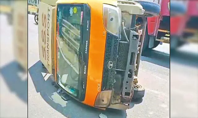 அம்பத்தூர் கள்ளிகுப்பம் சாலையில் நேற்று மதியம் மினி வேன் ஒன்று சென்று கொண்டிருந்தது. திடீரென டிரைவரின் கட்டுப்பாட்டை இழந்து தாறுமாறாக ஓடிய மினிவேன் சாலையில் கவிழ்ந்தது. அப்போது பின்னால் வந்த கார், சாலையில் கவிழ்ந்து கிடந்த மினிவேன் மீது மோதியது. இதில் காரின் முன்பகுதி சேதம் அடைந்தது. இந்த விபத்தில் மினிவேன் டிரைவர் காயம் அடைந்தார். அவரை அக்கம் பக்கத்தினர் மீட்டு ஆஸ்பத்திரிக்கு அனுப்பி வைத்தனர்.