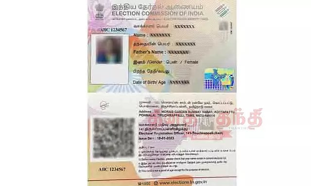 அடையாள அட்டையின் முன்புறம் வாக்காளரின் புகைப்படத்துடன், அட்டையின் வலது ஓரத்தின் மேற்பகுதியில் அவரது படம் 'நெகட்டிவ் இமேஜ்' போன்றும் இடம்பெற்றுள்ளது. முன்பு வாக்காளர் அடையாள அட்டையில், 'ஹாலோகிராம் ஸ்டிக்கர்' ஒட்டப்பட்டு இருக்கும். தற்போது, அட்டையிலே 'ஹாலோகிராம்' அச்சிடப்படுகிறது.