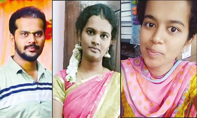 இந்த கோர விபத்தில் லாரிகளுக்கு இடையில் சிக்கி மணிகண்டன், லாவண்யா, இந்துமதி ஆகியோர் உடல் நசுங்கி பரிதாபமாக உயிரிழந்தனர்.