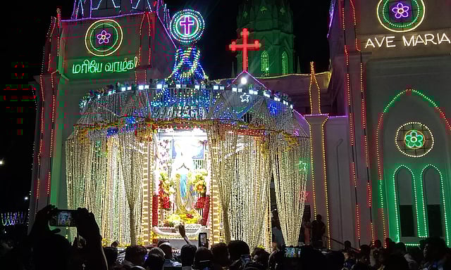 பூண்டி மாதா பேராலயத்தில் அன்னையின் பிறப்பு பெருவிழா தேர்பவனியை கும்பகோணம் பிஷப் தொடங்கி வைத்தார்.