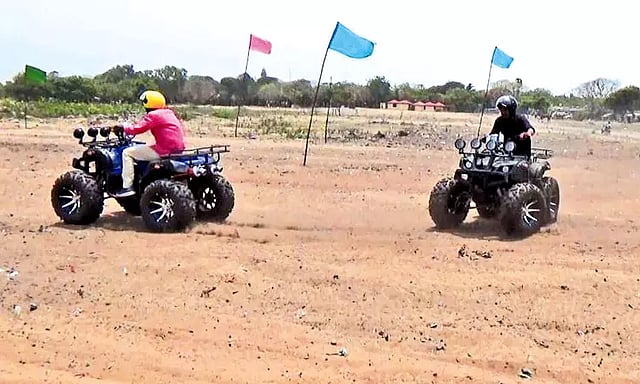 செங்கல்பட்டு மாவட்டத்தில் உள்ள சர்வதேச சுற்றுலா நகரமான மாமல்லபுரத்திற்கு பொழுதை கழிப்பதற்காக நாள்தோறும் ஏராளமான வெளிநாட்டு, உள்நாட்டு பயணிகள் வந்து செல்கின்றனர். இந்த நிலையில் தமிழ்நாடு சுற்றுலா வளர்ச்சி கழகம் சார்பில் இங்குள்ள கடற்கரைக்கு சுற்றுலா வரும் வாலிபர்கள், கல்லூரி மற்றும் பள்ளி மாணவர்களின் பொழுதுபோக்குக்காக மாமல்லபுரம் கடற்கரை கோவிலுக்கு அருகில் கடற்கரை மணலில் 1 கி.மீ. தூரத்திற்கு அதிக திறன் கொண்ட நான்கு சக்கரம் கொண்ட மோட்டார் சைக்கிள் சவாரி தொடங்கப்பட்டுள்ளது.
