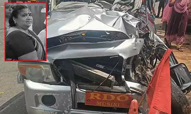 திருச்சியில் இருந்து கரூர் நோக்கி சென்று கொண்டிருந்த அரசு பேருந்தும், முசிறி வருவாய் கோட்டாட்சியர் ஆரமுத தேவசேனா சென்ற காரும் நேருக்கு நேர் மோதி விபத்துக்குள்ளாகியுள்ளது. காரின் டயர் வெடித்ததால் எதிர்பாராமல் ஏற்பட்ட இந்த விபத்தில், பலத்த காயமடைந்த வருவாய் கோட்டாட்சியர் ஆரமுத தேவசேனா பரிதாபமாக உயிரிழந்தார்.
