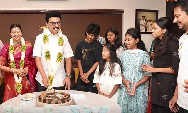 தொடர்ந்து பிறந்த நாளை முன்னிட்டு கோபாலபுரத்தில் உள்ள இல்லத்தில் தாயார் தயாளு அம்மாவை சந்தித்து மு.க ஸ்டாலின் ஆசி பெற்றார். பின்னர் செய்தியாளர்களுக்கு பேட்டி அளித்த ஸ்டாலின் "மாநிலத்தில் சுயாட்சி, இந்தி திணிப்பை தடுப்பது, இருமொழி கொள்கை தொடர்வது இதுதான் என் பிறந்த நாள் வாழ்த்து செய்தி" என்று கூறினார்.