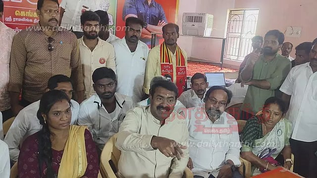 எந்த தேர்தலாக இருந்தாலும் நாம் தமிழர் கட்சி தனித்தே போட்டியிடும். எங்களுடைய வெற்றி மாபெரும் வெற்றியாக இருக்கும். கூட்டுறவு தேர்தலில் நாம் தமிழர் கட்சி நிர்வாகிகள் போட்டியிடுவார்கள். லியோ படத்தை ரெட் ஜெயின் மூவிஸ் நிறுவனத்துக்கு விற்பனை செய்தால் இந்த பிரச்சினை வந்து இருக்காது. விஜய் அரசியலுக்கு வருவதை பார்த்து பயந்துள்ளார்கள்.