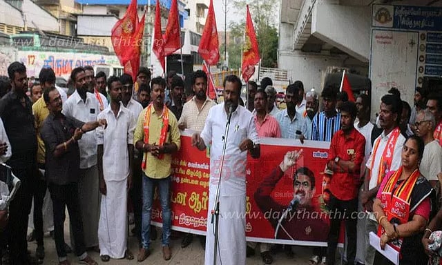 நெல்லை வண்ணார்பேட்டையில் நாம் தமிழர் கட்சி சார்பில் நேற்று மாலை ஆர்ப்பாட்டம் நடைபெற்றது. அம்பை பகுதிகளில் போலீசாரால் விசாரணைக்கு அழைத்து செல்லப்பட்டவர்களின் பற்களை பிடுங்கிய விவகாரத்தில் பாதிக்கப்பட்டவர்களுக்கு உரிய நிவாரணம் வழங்க வேண்டும், உதவி போலீஸ் சூப்பிரண்டு பல்வீர் சிங்கை கைது செய்ய வேண்டும் என்ற கோரிக்கையை வலியுறுத்தி இந்த ஆர்ப்பாட்டம் நடைபெற்றது. நாம் தமிழர் கட்சி நெல்லை மாவட்ட செயலாளர் கண்ணன் தலைமை தாங்கினார். மாநில கொள்கை பரப்பு செயலாளர் தங்கவேலு, மகளிர் பாசறை ஒருங்கிணைப்பாளர் சத்யா, நேதாஜி சுபாஷ் சேனை தலைவர் வக்கீல் மகாராஜன் ஆகியோர் கலந்து கொண்டு பேசினர். இதில் நெல்லை தொகுதி செயலாளர் காளிமுத்து, பாளையங்கோட்டை தொகுதி செயலாளர் ஜேக்கப் உள்பட பலர் கலந்து கொண்டனர்.