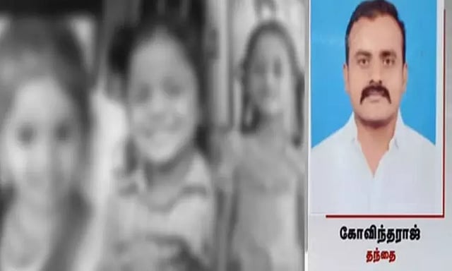 நாமக்கல் மாவட்டம், ராசிபுரம் பகுதியைச் சேர்ந்தவர் கேவிந்தராஜ் (வயது 36). இவர் வீடு கட்டுவதற்காக அதிகளவு கடன் வாங்கியுள்ளார். அந்த கடனை திருப்பி செலுத்த முடியாததால் மிகுந்த மனவேதனையில் இருந்து வந்துள்ளார். இந்த நிலையில் அவர் திடீரென தனது மகள்களான பிரக்திஷாஸ்ரீ(9), ரித்திகாஸ்ரீ(7), தேவஸ்ரீ(3) ஆகிய 3 பேரையும் அரிவாளால் வெட்டிக் கொல செய்துள்ளார். இதனையடுத்து அவர் விஷம்குடித்து தற்கொலை செய்துள்ளார். கடன் பிரச்சினை காரணமாக தந்தையே தனது 3 மகள்களை வெட்டிக் கொன்றுவிட்டு தானும் விஷம் குடித்து தற்கொலை செய்து கொண்ட சம்பவர் அப்பகுதியில் பெரும் சேகத்தை ஏற்படுத்தியுள்ளது. இதுகுறித்து தகவல் அறிந்த நாமக்கல் போலீசார் சம்பவ இடத்திற்கு சென்று 4 பேரின் உடல்களை மீட்டு பிரேத பரிசோதனைக்கு அனுப்பி வைத்து, விசாரணை செய்து வருகின்றனர்.