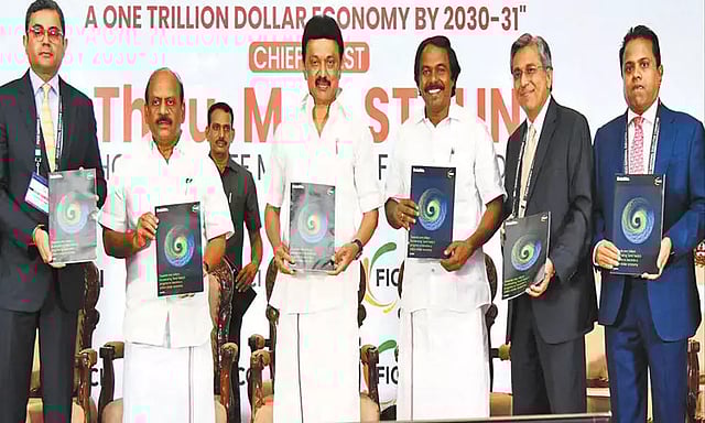மேலும், 2030-2031-ம் ஆண்டுக்குள் ஒரு 'டிரில்லியன் டாலர்' பொருளாதாரமாக தமிழ்நாட்டின் முன்னேற்றத்தை விரைவுபடுத்துவது குறித்த 'எப்.ஐ.சி.சி.ஐ.'-யின் 'டெலாய்ட்' ஆய்வு அறிவு கட்டுரையை முதல்-அமைச்சர் வெளியிட்டார்.