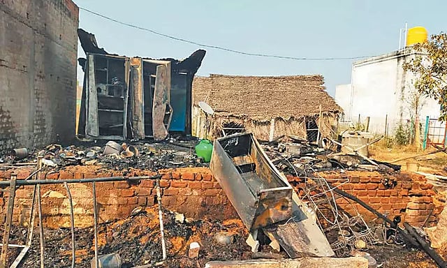 நேற்று கணவன்-மனைவி இருவரும் வேலைக்கு சென்றுவிட்டனர். இவர்களது 2-வது மகன் சுஜன் ( 9) மட்டும் வீட்டில் இருந்தார். நேற்று மதியம் திடீரென இவர்களது குடிசை வீட்டில் இருந்த பிரிட்ஜ் வயரில் மின்கசிவு ஏற்பட்டு தீப்பிடித்து எரிந்தது. இதனால் பயந்துபோன சுஜன், உடனடியாக வெளியே ஓடிவந்துவிட்டார். அதற்குள் குடிசை வீடு முழுவதும் தீப்பிடித்து எரிந்தது. அப்போது வீட்டுக்குள் இருந்த கியாஸ் சிலிண்டர் பயங்கர சத்தத்துடன் வெடித்து சிதறியது. அம்பத்தூர் தீயணைப்பு நிலைய வீரர்கள் விரைந்து வந்து தீயை அணைத்தனர். எனினும் குடிசை வீடு முற்றிலும் எரிந்து சாம்பலானது. வீட்டில் இருந்த பீரோ, பிரிட்ஜ், கட்டில் உள்ளிட்ட பொருட்கள் தீக்கிரையாகின.