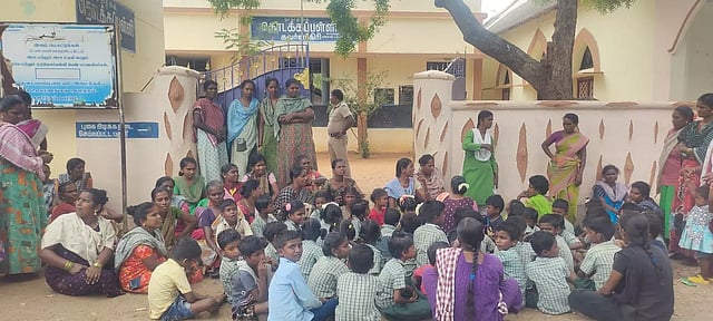 ஓட்டப்பிடாரம் அருகே உள்ள கவர்ணகிரி கிராமத்தில் தூ.நா.தி.தொடக்கப்பள்ளி செயல்பட்டு வருகிறது. இந்தப் பள்ளியில் 60-க்கும் மேற்பட்ட மாணவ, மாணவிகள் பயின்று வருகின்றனர். இந்நிலையில் இந்த பள்ளி ஆசிரியர் ஜெபராஜ் பெரியநத்தம் கிராமத்திற்கு பணியிட மாற்றம் செய்யப்பட்டார். கடந்த 9 மாதத்திற்கு முன்பு தான் இந்த பள்ளியில் அவர் ஆசிரியராக சேர்ந்தார்.