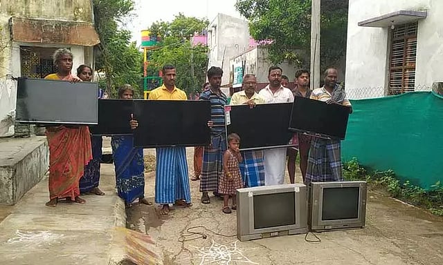 பெண்ணாடம் பகுதியில் நேற்று முன்தினம் இரவு இடி-மின்னலுடன் பலத்த மழை பெய்தது. இதில் முருகன்குடி அய்யனார்கோவில் தெருவை சேர்ந்த தமிழ்ச்செல்வன் (45) என்பவரது வீட்டின் மாடியில் மின்னல் தாக்கியது. இதில் வீட்டின் சுவர்களில் விரிசல் ஏற்பட்டது. இதேபோல் மின்னல் தாக்கியதில் அதே பகுதியை சேர்ந்த 20-க்கும் மேற்பட்ட வீடுகளில் இருந்த மின்விளக்குகள், டிவி, பேன், பிரிட்ஜ் மற்றும் மின் ஒயர்கள் முற்றிலும் கருகி சேதமடைந்தன. நள்ளிரவில் மின்னல் தாக்கி வீடு மற்றும் மின்சாதன பொருட்கள் சேதமடைந்த சம்பவம் அப்பகுதியில் பெரும் பரபரப்பை ஏற்படுத்தி உள்ளது.