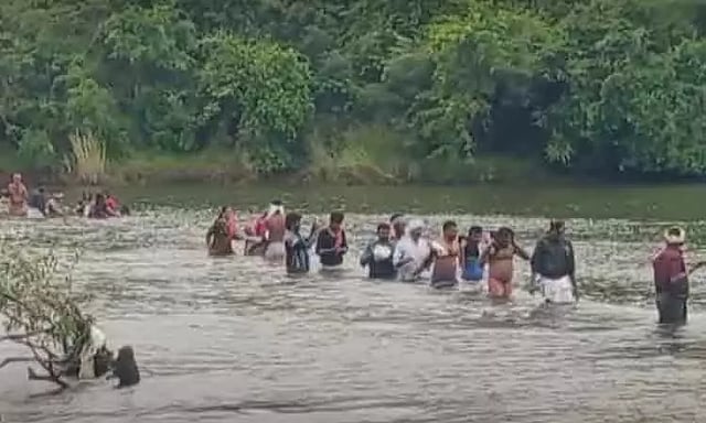 ஆற்றில் நீர் வரத்து அதிகரிப்பால் கோவிலுக்கு சென்ற பக்தர்கள் ஆற்றை கடக்க முடியாமல் சிக்கி தவித்தனர். உடனடியாக வனத்துறையினர் கட்டிய கயிற்றை, பக்தர்கள் பிடித்து கொண்டும், குழந்தைகளை பாத்திரங்களில் வைத்தும் பாதுகாப்பாக வெளியேறினர்.