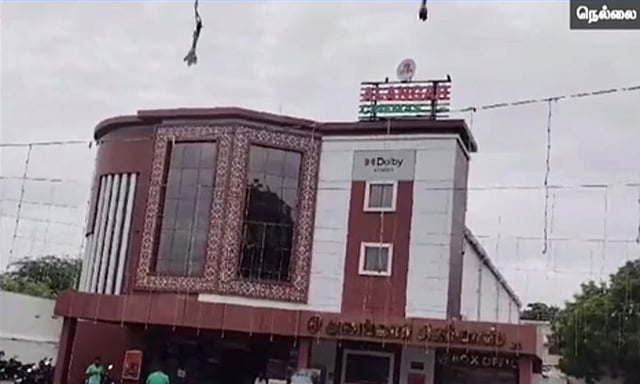 நெல்லையில் மேலப்பாளையம் பகுதியில் அமரன் திரைப்படம் திரையிடப்பட்ட திரையரங்க வளாகத்திற்குள் இன்று அதிகாலை 3 மணியளவில் மர்ம நபர்கள் சிலரால் பெட்ரோல் குண்டு வீசப்பட்டு உள்ளது. இந்த சம்பவத்தில் ஈடுபட்ட 2 பேர் பெட்ரோல் குண்டுகளை வீசிவிட்டு தப்பியோடி விட்டனர். மொத்தம் 3 பெட்ரோல் குண்டுகள் வீசப்பட்டு உள்ளன.