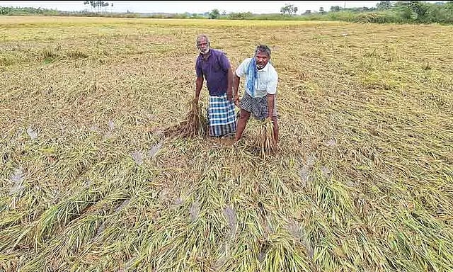 விளைநிலங்களில் தேங்கிய தண்ணீர் வடியாததால், நெற்பயிர்களை அறுவடை செய்ய முடியவில்லை. நெற்பயிர்கள் மீண்டும் முளைக்க தொடங்கியதால் வீணாகின. எனவே மழையால் சேதமடைந்த பயிர்களை கணக்கிட்டு அரசு உரிய இழப்பீடு வழங்க வேண்டும் என்றனர்.