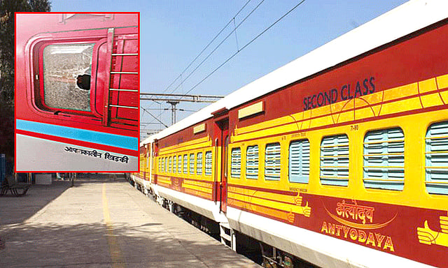 நாகர்கோவிலில் இருந்து நெல்லை, மதுரை வழியாக தாம்பரத்துக்கு தினமும் அந்தியோதயா ரெயில் இயக்கப்பட்டு வருகிறது. அதன்படி இந்த ரெயில் நேற்று ஆரல்வாய்மொழி அருகே ரெயில் வந்து கொண்டிருந்தபோது மர்மநபர்கள் திடீரென்று ரெயில் மீது சரமாரியாக கற்களை வீசினர். இதில் ஒரு கல், 5-வது பெட்டி பக்கவாட்டு ஜன்னல் கண்ணாடி மீது விழுந்தது. அந்த கண்ணாடியில் ஓட்டை விழுந்து கண்ணாடி துகள்கள் சிதறின.