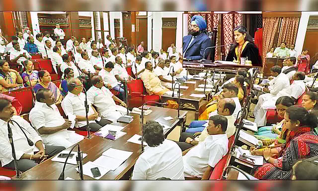 பெருநகர சென்னை மாநகராட்சியின் ஏப்ரல் மாதத்துக்கான மாதாந்திர மன்றக்கூட்டம், ரிப்பன் மாளிகையில் மேயர் ஆர்.பிரியா தலைமையில் நேற்று நடந்தது. கூட்டத்துக்கு, துணை மேயர் மகேஷ் குமார், கமிஷனர் ககன்தீப் சிங் பேடி ஆகியோர் முன்னிலை வகித்தனர். அப்போது, நேரமில்லா நேரத்தில் உறுப்பினர்களின் கேள்விகளுக்கு மேயர் ஆர்.பிரியா பதில் அளித்து பேசினார்.
