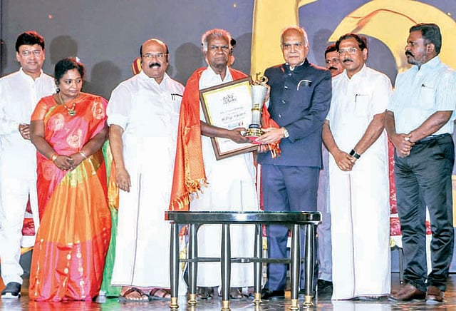விழாவில் இந்திய கம்யூனிஸ்டு கட்சியின் மூத்த தலைவரும், சுதந்திர போராட்ட வீரருமான ஆர்.நல்லக்கண்ணுவுக்கு தமிழ் ரத்னா விருதை கவர்னர் பன்வாரிலால் புரோகித் வழங்கினார்.