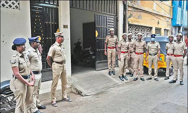 சட்டக்கல்லூரி, ஏழுகிணறு மற்றும் முத்தையால் பேட்டை ஆகிய போலீஸ் நிலைய எல்லை பகுதிகளில் பூக்கடை துணை கமிஷனர் ஆல்பர்ட் ஜான் தலைமையில் உதவி கமிஷனர்கள் வீரக்குமார், பாலகிருஷ்ணபிரபு, லட்சுமணன் மற்றும் 6 இன்ஸ்பெக்டர்கள் உள்ளிட்ட 50-க்கும் மேற்பட்ட போலீசார் நேற்று காலை 6 மணி முதல் சோதனையில் ஈடுபட்டனர். பகல் 11 மணி அளவில் சோதனை நிறைவு பெற்றது.